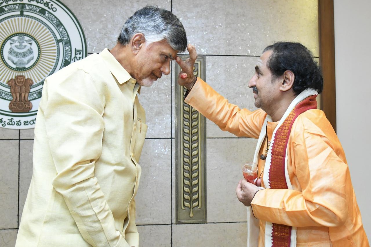 అమరావతి రాజధాని పూర్తై ప్రపంచంలో మేటి నగరం అవుతుందని, పోలవరం సహా అన్ని ప్రాజెక్టులు పూర్తై ప్రజలకు మేలు జరుగుతుందని నాగఫణి శర్మ అన్నారు. ముఖ్యమంత్రిని ఈ మేరకు ఆయన ఆశీర్వదించారు.