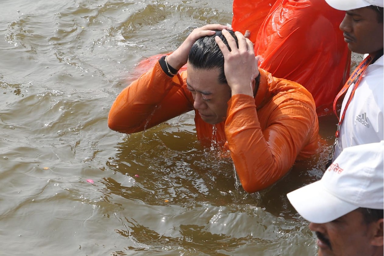 - భూటాన్ రాజుతో పాటు పుణ్యస్నానమాచరించిన యోగి ఆదిత్యనాథ్