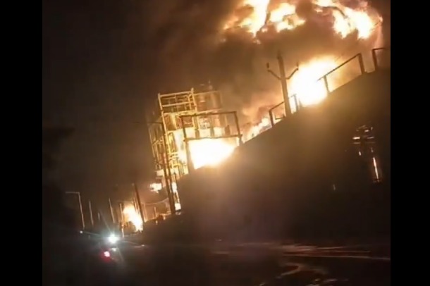 రసాయనాల కారణంగా ఘాటైన పొగ వెలువడింది. స్థానికులు ఆ వాయువులు పీల్చడంతో తీవ్రంగా ఇబ్బందిపడ్డారు. ప్రమాదంపై సమాచారం అందుకున్న అగ్నిమాపక సిబ్బంది వెంటనే అక్కడికి చేరుకుని మంటలు ఆర్పేందుకు ప్రయత్నిస్తున్నారు.