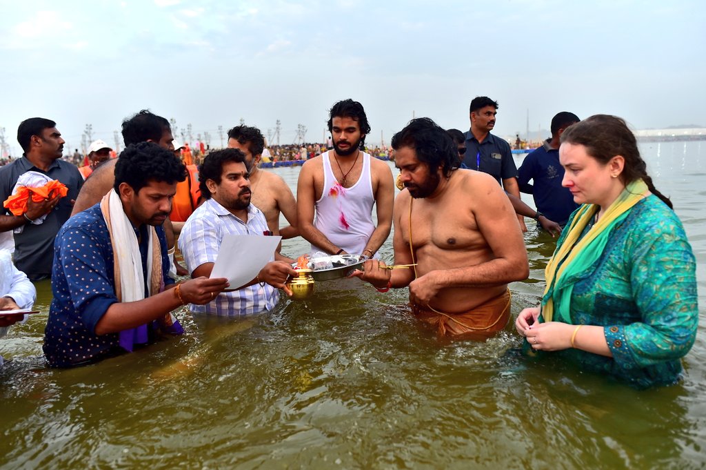 - త్రివేణి సంగమం వద్ద పుణ్యస్నానాలు