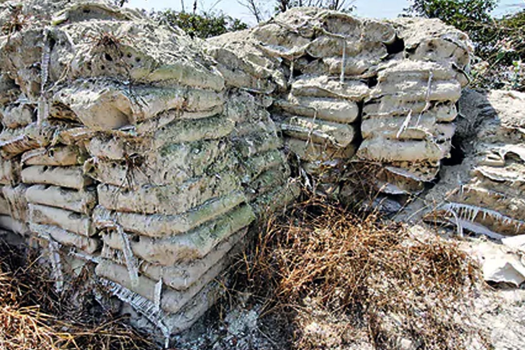 అమరావతిలో పిచ్చిమొక్కల మధ్య బయటపడుతున్న సిమెంట్ బస్తాలు, నిర్మాణ సామగ్రి