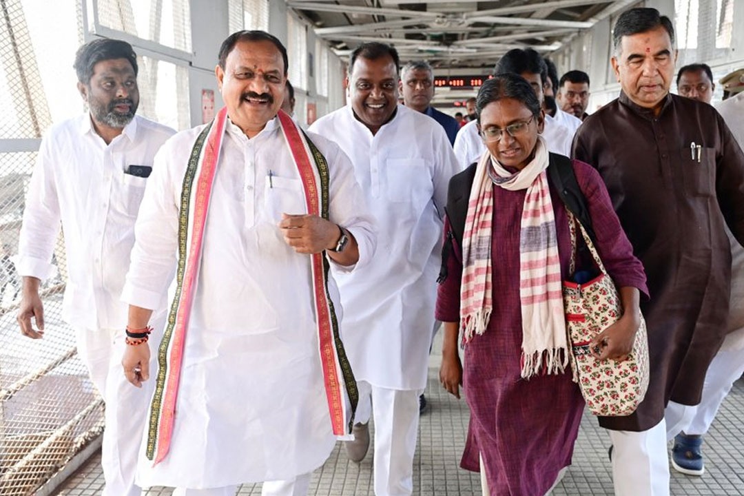 తెలంగాణ కాంగ్రెస్ పార్టీ నూతన ఇన్చార్జ్గా నియమితులైన ఏఐసీసీ నాయకురాలు మీనాక్షి నటరాజన్ నేడు హైదరాబాద్ చేరుకున్నారు. రైలులో కాచిగూడకు చేరుకున్న ఆమెకు తెలంగాణ కాంగ్రెస్ అధ్యక్షుడు మహేశ్ కుమార్ గౌడ్ శాలువా కప్పి స్వాగతం పలికారు.