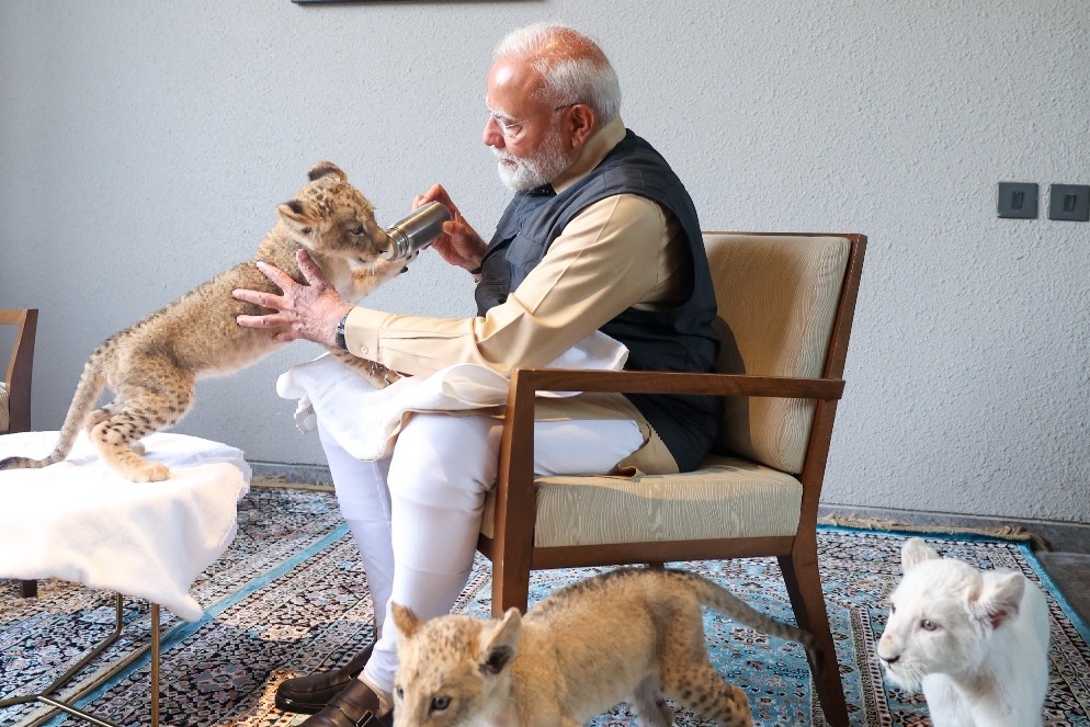 వనతారాలో పర్యటన... పులి పిల్లలకు పాలు తాగించిన ప్రధాని మోదీ... ఫొటోలు ఇవిగో!