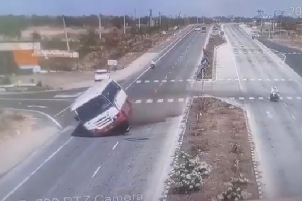 బైక్ ను తప్పించబోయి బోల్తాపడిన బస్సు.... వీడియో ఇదిగో!