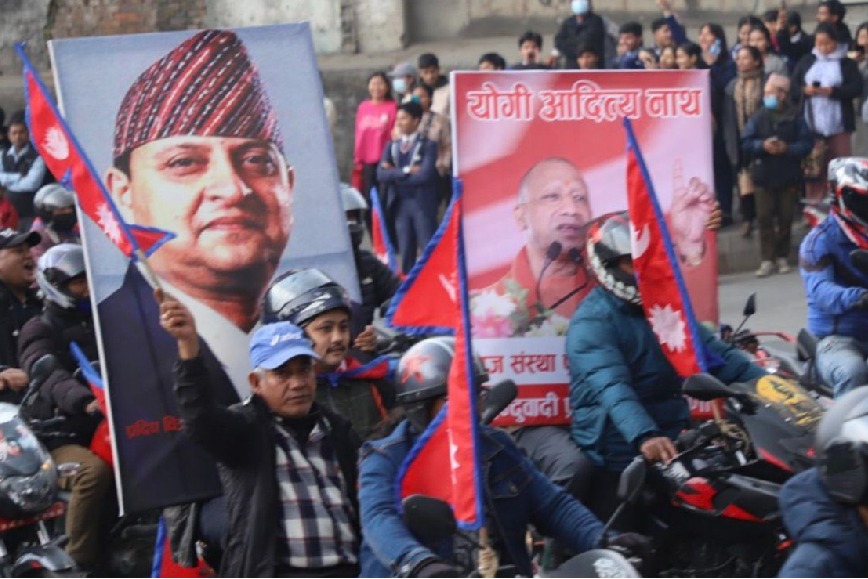 నేపాల్‌లో రాచరికానికి మద్దతుగా నిర్వహించిన ర్యాలీలో ఉత్తరప్రదేశ్ ముఖ్యమంత్రి యోగి ఆదిత్యనాథ్ చిత్రాలను ప్రదర్శించారు. ఇందుకు కారణం, యోగి నేపాల్‌లో రాచరికానికి బలమైన మద్దతుదారు.