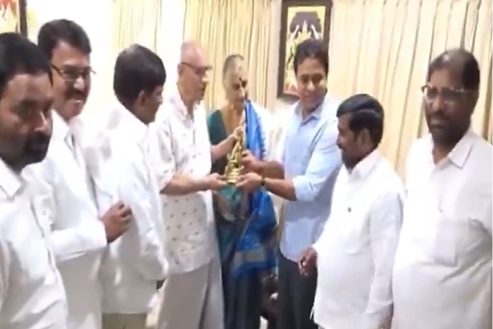 - శాలువా కప్పి సన్మానించి, యోగక్షేమాలు అడిగి తెలుసుకున్న కేటీఆర్