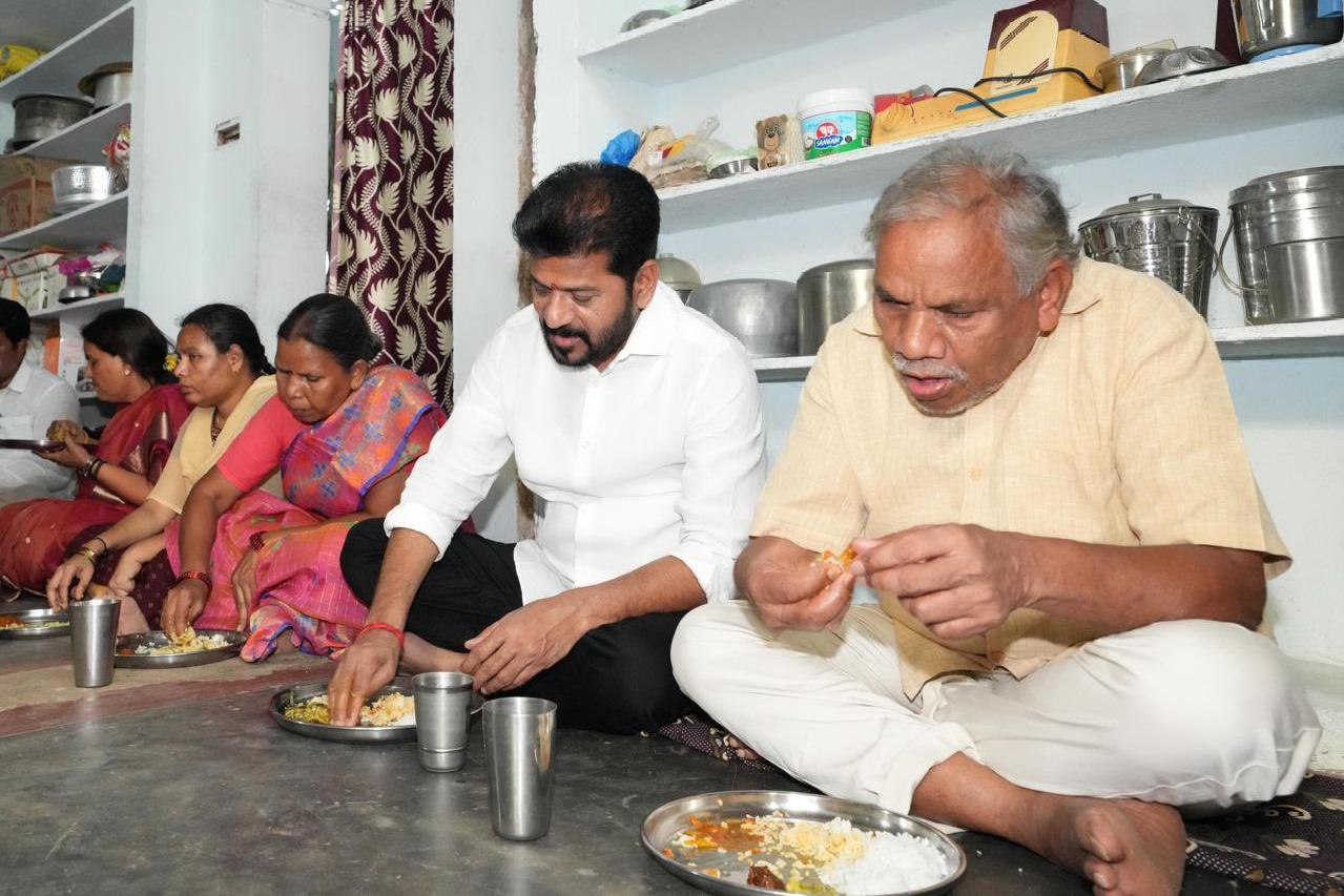 Revanth Reddy: సామాన్యుడి ఇంట సన్నబియ్యంతో భోజనం చేసిన సీఎం రేవంత్ రెడ్డి