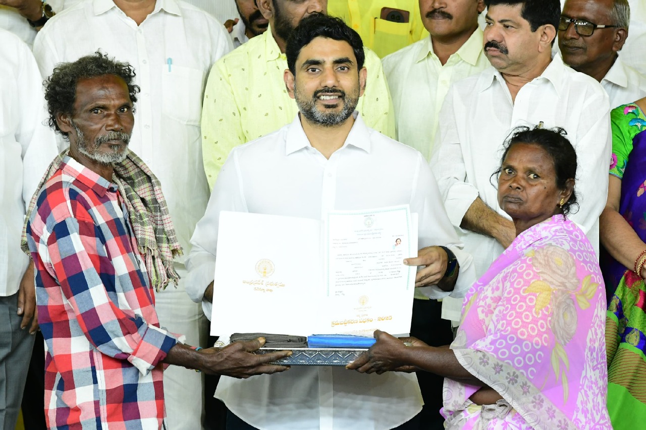 • ఇంటి పట్టాల పంపిణీ కార్యక్రమంలో పాల్గొన్న నారా లోకేశ్