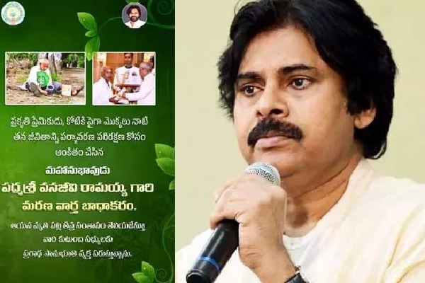 ‘పర్యావరణ పరిరక్షణకు జీవితాన్ని అంకితం చేసిన పద్మశ్రీ వనజీవి రామయ్య స్ఫూర్తిని కొనసాగిస్తాం. తన జీవిత కాలంలో సుమారు కోటి మొక్కలు నాటారు. ఆయన కన్నుమూశారని తెలిసి చింతించా. వృక్షో రక్షతి రక్షిత: అనే పెద్దల మాటలోని వారసత్వాన్ని ప్రజలకు తెలియజేసేందుకు రామయ్య పడిన తపన సమాజానికి ఎంతో మేలు చేస్తోంది. తొలకరి చినుకులు పడగానే మొక్కలు నాటుతూ, విత్తనాలు జల్లుతూ పచ్చదనం పెంచడానికి రామయ్య, ఆయన సతీమణి చేసిన వనయజ్ఞం ఎన్నో తరాలకు స్వచ్ఛమైన పర్యావరణాన్ని అందిస్తుంది. ఓసారి ప్రమాదంలో గాయపడి ఆసుపత్రిలో ఉన్న రామయ్యను పరామర్శించా. అప్పుడు కూడా ఆయన పర్యావరణ పరిరక్షణపైనే మాట్లాడారు. రామయ్య స్ఫూర్తిని కొనసాగిస్తూ రాష్ట్రంలో పచ్చదనం పెంపునకు కృషి చేస్తాం. పర్యావరణ పరిరక్షణలో ప్రతి ఒక్కరినీ భాగస్వాములను చేస్తాం’’ అని పవన్ కల్యాణ్ ఓ ప్రకటన విడుదల చేశారు.