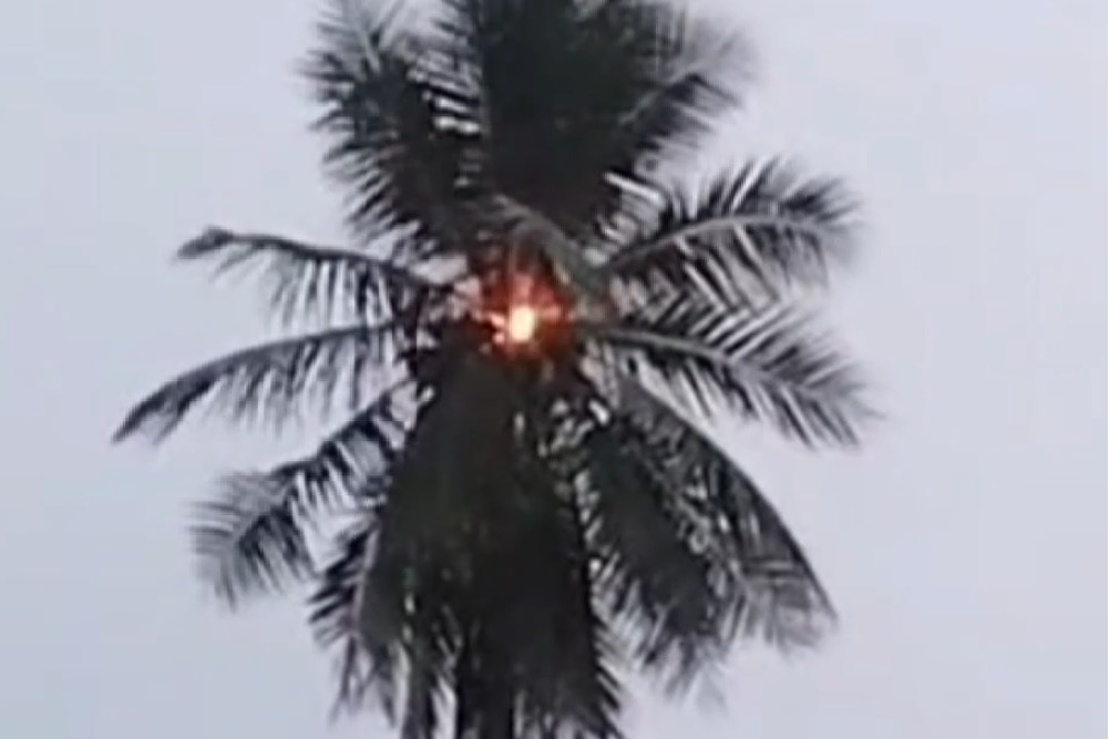 Katta Nagaraju: పిడుగుపాటుకు బాపట్లలో కొబ్బరి చెట్టుపై మంటలు.. వీడియో ఇదిగో!