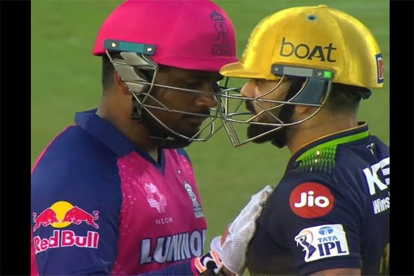 54 పరుగుల వద్ద బ్యాటింగ్ చేస్తున్నప్పుడు ఒక్కసారిగా గుండె పట్టుకున్నాడు. ఆపై రాజస్థాన్ కెస్టెన్ సంజూ శాంసన్ దగ్గరికి వెళ్లి హార్ట్బీట్ చెక్ చేయాలని కోరాడు. దాంతో సంజూ కోహ్లీ ఛాతిపై చేయి పెట్టి చూశాడు. అనంతరం కోహ్లీ బ్యాటింగ్ కొనసాగించాడు.