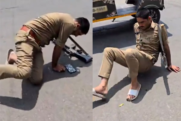యూనిఫాం ధరించిన ఒక పోలీస్‌ వద్ద సర్వీస్‌ రైఫిల్ ఉంది. పూటుగా మద్యం సేవించిన‌ అతడు తూలుతూ రద్దీగా ఉన్న రోడ్డుపై పడ్డాడు. దాంతో పైకి లేచేందుకు కూడా ఇబ్బంది పడ్డాడు. ఇక ఆ పోలీస్‌ వద్ద తుపాకీ ఉండటంతో ఆయనతో పాటు ఎవరికైనా ఏమైనా ప్రమాదం జరగవచ్చని అక్కడున్న జనం భయాందోళనకు గుర‌య్యారు.
