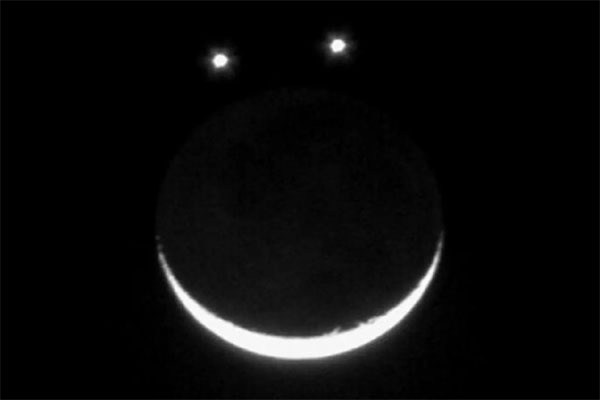 ఏప్రిల్ 25న తెల్లవారుజాముకు ముందు శుక్రుడు, శని... చందమామ (నెలవంక)కు అతి సమీపంలోకి రానున్నాయి. ఒక దగ్గరే కనిపించనున్న ఆ మూడు... 'స్మైలీ ఫేస్' ఆకృతిని ప్రతిబింబించనున్నాయి. సూర్యోదయానికి ముందు అతి తక్కువ సమయం మాత్రమే కనిపించనున్న ఈ అద్భుత దృశ్యాన్ని ప్రపంచంలో ఎక్కడినుంచైనా వీక్షించేందుకు అవకాశం ఉంది.