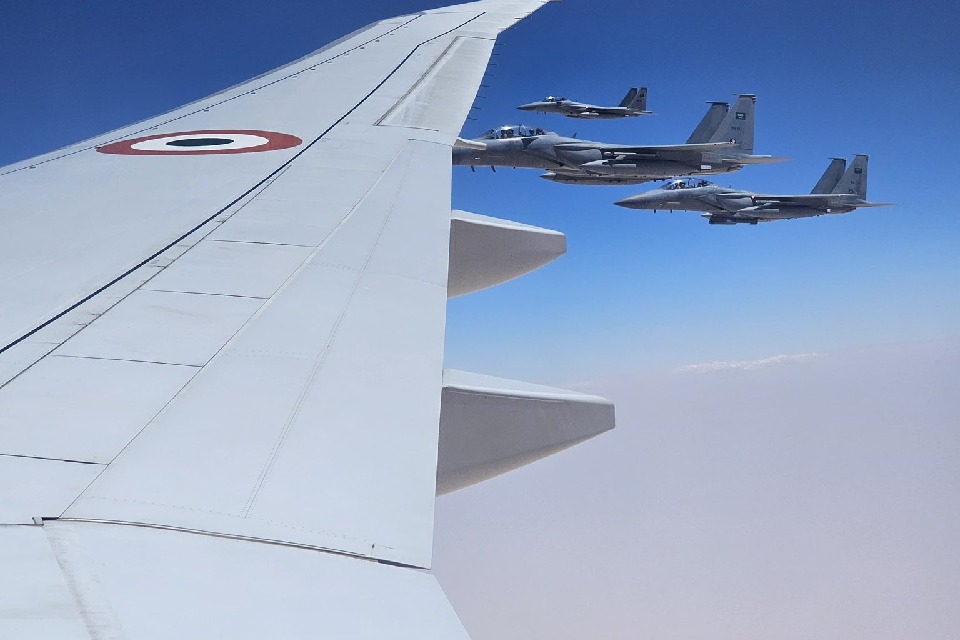 - రాయల్ సౌదీ ఎయిర్ఫోర్స్కు చెందిన ఎఫ్-15 విమానాల ఎస్కార్ట్