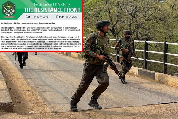 "పహల్గామ్ దాడిలో మా ప్రమేయం లేదు. ఈ చర్యను టీఆర్ఎఫ్కు ఆపాదించడం తొందరపాటు చర్యే అవుతుంది. ఇంతకుముందు వచ్చిన ప్రకటనతో కూడా మాకు ఎలాంటి సంబంధం లేదు. భారత్ మా వ్యవస్థల్ని హ్యాక్ చేసి ఆ సందేశాన్ని పోస్ట్ చేసింది. ఇది భారత సైబర్-ఇంటెలిజెన్స్ ఆపరేటివ్ల పని. దీనిపై మేము పూర్తి దర్యాప్తు చేస్తున్నాం. రాజకీయ ప్రయోజనాల కోసం భారత్ ఇలా చేయడం ఇదేమీ మొదటిసారి కాదు" అంటూ టీఆర్ఎఫ్ ఆరోపించింది.