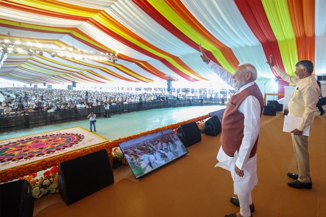 • అమరావతి పునర్నిర్మాణ పనుల ప్రారంభ సభ ముగింపు గంట ఆలస్యం