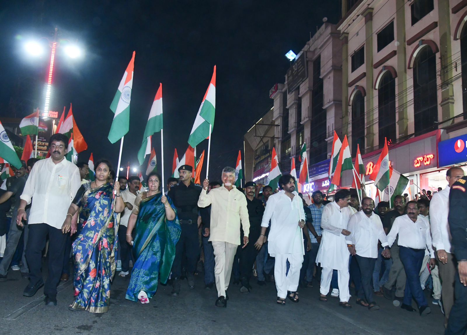 ఇందిరాగాంధీ మున్సిపల్ స్టేడియం నుంచి బెంజ్ సర్కిల్ వరకు ఈ భారీ ప్రదర్శన కన్నుల పండువగా సాగింది. బీజేపీ, తెలుగుదేశం, జనసేన నాయకులు, కార్యకర్తలు, నగరవాసులు పెద్ద సంఖ్యలో పాల్గొని జాతీయ జెండాలను చేతబూని తమ దేశభక్తిని చాటుకున్నారు. విద్యార్థులు ఆలపించిన దేశభక్తి గీతాలు జాతీయ సమైక్యత, సమగ్రత స్ఫూర్తిని ఇనుమడింపజేశాయి.