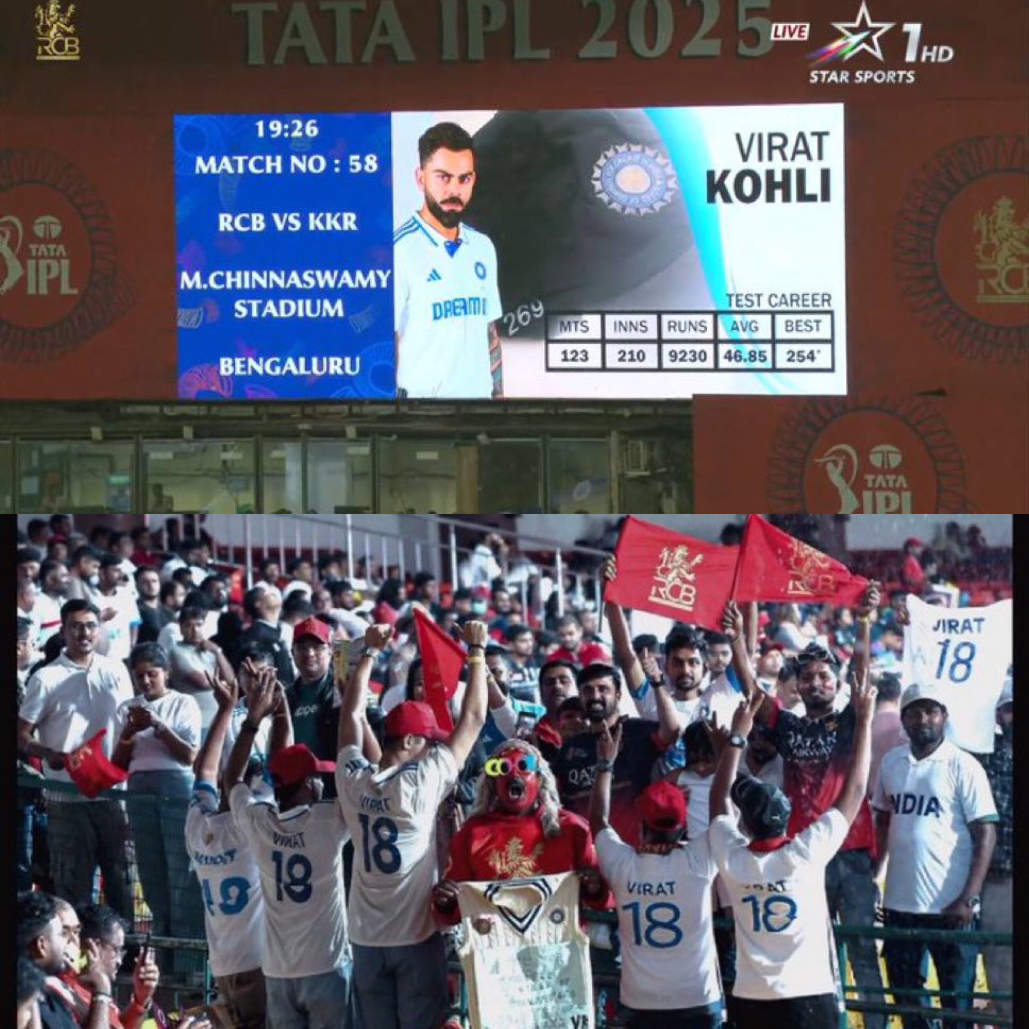 భారత్-పాకిస్థాన్ సరిహద్దు ఉద్రిక్తతల కారణంగా ఐపీఎల్కు కొంతకాలం అంతరాయం ఏర్పడిన సంగతి తెలిసిందే. ఈ విరామ సమయంలోనే, మే 12న విరాట్ కోహ్లీ హఠాత్తుగా టెస్ట్ క్రికెట్ నుంచి తప్పుకుంటున్నట్లు ప్రకటించి యావత్ క్రీడా ప్రపంచాన్ని దిగ్భ్రాంతికి గురిచేశారు. ఐపీఎల్ తిరిగి ప్రారంభమైన తర్వాత కోహ్లీ ఆడనున్న తొలి మ్యాచ్ ఇదే కావడంతో, ఆయనకు ఘనంగా వీడ్కోలు పలకాలని ఆర్సీబీ ఫ్యాన్స్ ఈ వినూత్న కార్యక్రమానికి శ్రీకారం చుట్టారు.