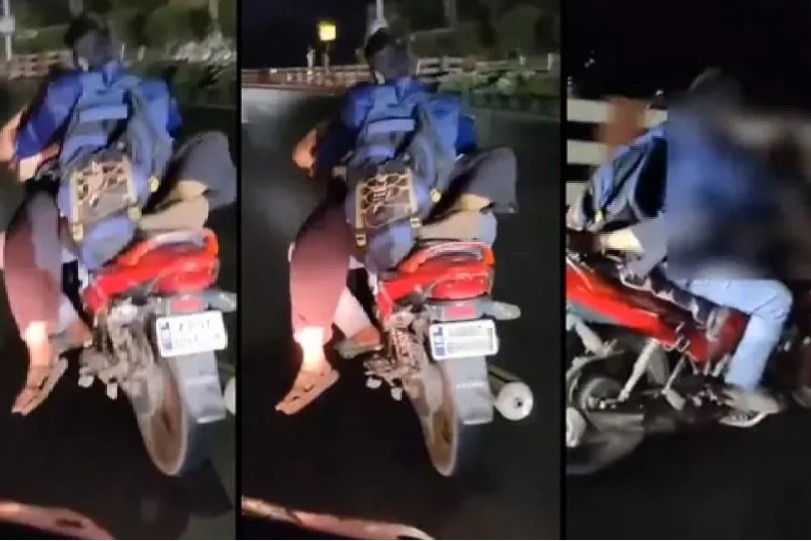 - ప్రమాదకరంగా బైక్ పై ప్రయాణిస్తూ రొమాన్స్