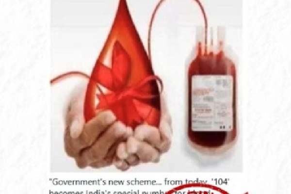 - 104 నంబర్ ద్వారా 'బ్లడ్ ఆన్ కాల్' సేవ అంటూ వైరల్ అవుతున్న పోస్ట్