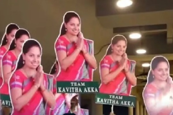 - ఎయిర్ పోర్ట్ వద్ద కవిత కటౌట్లు, బ్యానర్లు