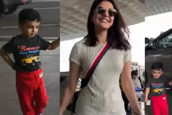 వైట్ టీషర్ట్, బ్లూ జీన్స్ తో కాజల్ మెరిసిపోయింది. పక్కనే బ్లాక్ టీషర్ట్, ఎరుపు రంగు ట్రౌజర్ తో కాజల్ కొడుకు ముద్దుగా కనిపించాడు. ఇద్దరూ కలిసి విమానాశ్రయం లోపలికి వెళుతున్న వీడియో ప్రస్తుతం సోషల్ మీడియాలో వైరల్ గా మారింది. ఈ వీడియో చూసి అభిమానులు స్పందిస్తూ.. కాజల్ అగర్వాల్ కొడుకు అచ్చం హీరోలా ఉన్నాడని కామెంట్స్ చేస్తున్నారు. కొడుకు పుట్టినా కాజల్ అగర్వాల్ అందం ఏమాత్రం తగ్గలేదని అంటున్నారు.