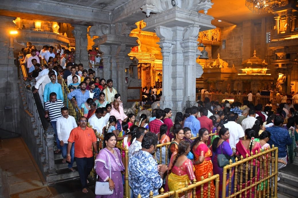 స్వామివారి ధర్మ దర్శనం కోసం భక్తులు దాదాపు మూడు గంటల పాటు వేచి ఉండాల్సి వస్తుండగా, ప్రత్యేక ప్రవేశ దర్శనానికి రెండు గంటల సమయం పట్టింది. ఆలయానికి చేరుకున్న భక్తులు వివిధ ఆర్జిత సేవల్లో పాల్గొని స్వామివారిని దర్శించుకుని మొక్కుబడులు తీర్చుకున్నారు. భక్తులకు ఎటువంటి అసౌకర్యం కలగకుండా ఆలయ అధికారులు ప్రత్యేక ఏర్పాట్లు చేసి సౌకర్యాలు కల్పిస్తున్నారు.