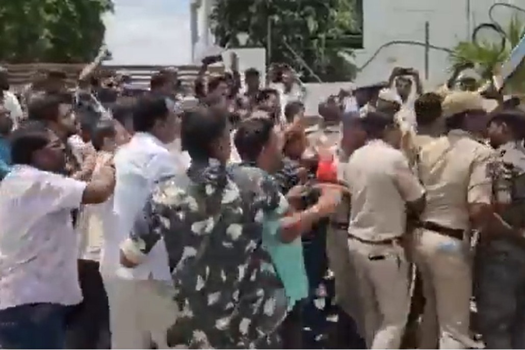కేటీఆర్ క్యాంపు ఆఫీసులో సీఎం ఫొటో రగడ.. రేవంత్ రెడ్డి ఫొటో పగలడంతో కాంగ్రెస్, బీఆర్ఎస్ కార్యకర్తల తోపులాట