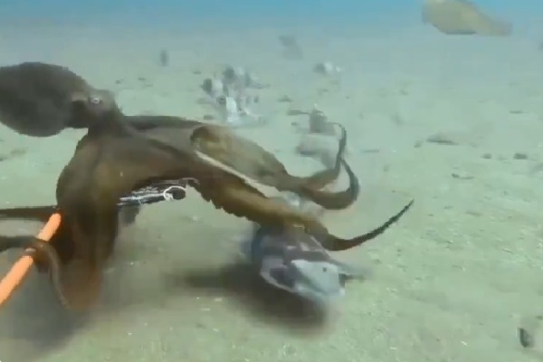 Thu 15:37 ఆక్టోపస్... పట్టు పట్టిందంటే వదలదు... వీడియో చూడండి! ఆక్టోపస్ ఓ చేపను వేటాడిన దృశ్యాలు వైరల్ టెంటకిల్స్ తో చాకచక్యంగా చేపను బంధించిన వైనం క్షణం కూడా వదలకుండా చేపను చుట్టేసిన ఆక్టోపస్ కొద్దిసేపట్లోనే చేపను ఆరగించిన తీరు ఆక్టోపస్ వేగానికి నెటిజన్ల ఆశ్చర్యం Read full story