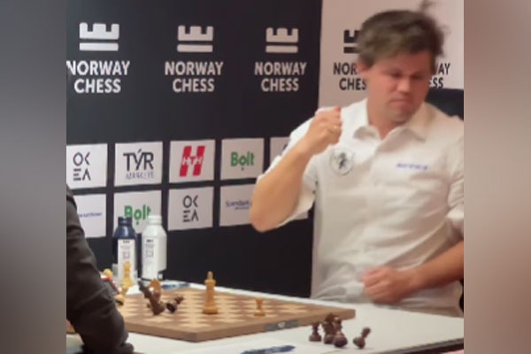 - ఈ ఓటమిని తట్టుకోలేక పిడికిలితో ఒక్కసారిగా చెస్ బోర్డు టేబుల్ను గట్టిగా కొట్టిన కార్ల్సన్
