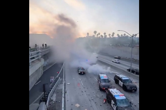 దాదాపు 2,000 మంది ఆందోళనకారులు లాస్ ఏంజెలెస్ డౌన్టౌన్లోని ప్రధాన 101 ఫ్రీవేను తమ ఆధీనంలోకి తీసుకున్నారు. దీంతో అధికారులు ఆ మార్గాన్ని పూర్తిగా మూసివేయాల్సి వచ్చింది. నిరసనకారులు పలు సెల్ఫ్ డ్రైవింగ్ కార్లకు, పోలీసు వాహనాలకు నిప్పుపెట్టారు. భద్రతా సిబ్బందిపైకి వివిధ వస్తువులు విసురుతూ దాడులకు ప్రయత్నించారు. ఆందోళనకారులను చెదరగొట్టేందుకు పోలీసులు జరిపిన చర్యల్లో భాగంగా ఒక విలేకరికి రబ్బరు తూటా తగిలింది. శాంతిభద్రతల దృష్ట్యా డౌన్టౌన్ వాణిజ్య ప్రాంతంలో ప్రజలు గుమికూడరాదని పోలీసులు హెచ్చరికలు జారీ చేశారు.
