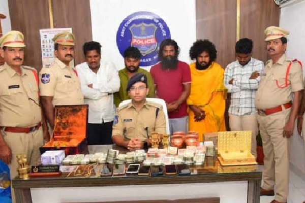 దీంతో బాధితుడు కొత్తపల్లి పోలీసులను ఆశ్రయించాడు. బాధితుడి ఫిర్యాదు మేరకు కేసు నమోదు చేసిన పోలీసులు గుప్త నిధుల పేరుతో మోసం చేసిన ఈన్నాల రాజు, మిర్యాల దుర్గయ్య, పెనుగొండ రాజు, చల్ల అజయ్, ఈర్నాల సతీశ్ లను అరెస్టు చేశారు. వారి వద్ద నుంచి రూ.15.30 లక్షల నగదుతో పాటు ఏడు తులాల బంగారం, మూడు కార్లు, ఏడు మొబైల్ ఫోన్లను స్వాధీనం చేసుకున్నట్లు కరీంనగర్ రూరల్ ఏసీపీ శుభం ప్రకాశ్ తెలిపారు.