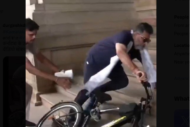 - విధానసౌధ వద్ద సైకిల్ దిగుతూ అదుపుతప్పి పడిపోయిన డీకే