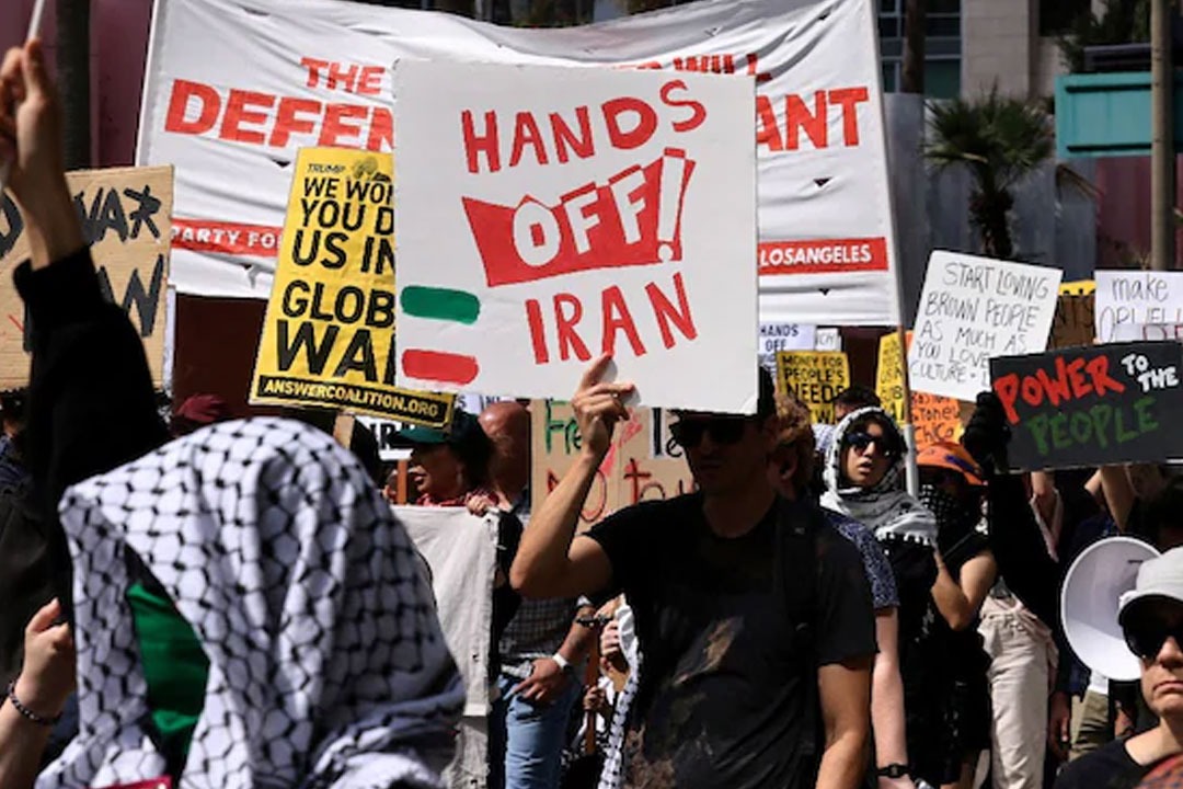 - ఇజ్రాయెల్కు మద్దతు ఆపాలని, ఇరాన్తో యుద్ధం వద్దని డిమాండ్