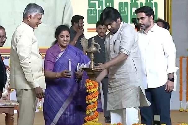 Chandrababu Naidu: 'సుపరిపాలనలో తొలి అడుగు'... జ్యోతి ప్రజ్వలన చేసిన చంద్రబాబు, పవన్, లోకేశ్, పురందేశ్వరి