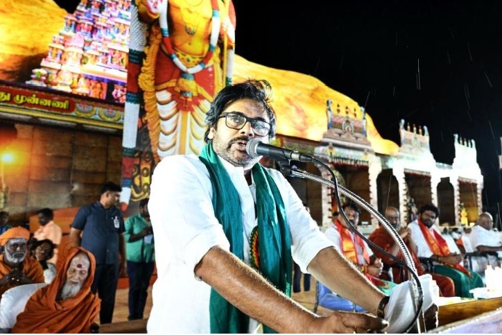 మధురైలో జరిగిన మురుగన్ భక్తుల సదస్సులో పవన్ పాల్గొని ప్రసంగించారు. "మురుగన్ నామస్మరణతో ఏ శత్రువైనా పారిపోతాడు" అనే ఆశయాన్ని ముందుకు తీసుకువెళ్తూ, ధర్మ మార్గంలో పయనించాలని ఆయన పిలుపునిచ్చారు. వీరవేల్ మురుగన్పై ఆత్మవిశ్వాసంతో విజయం సాధించవచ్చని తెలిపారు. 'ఒక క్రైస్తవుడు తన మతాన్ని గౌరవించవచ్చు. ఒక ముస్లిం కూడా వారి మతాన్ని గౌరవించవచ్చు. కానీ హిందువు తన మతాన్ని గౌరవిస్తే మాత్రం ఎందుకు అభ్యంతరం?' అని ప్రశ్నించారు. సనాతన ధర్మంపై ఉదయనిధి స్టాలిన్ వంటి డీఎంకే నేతలు విమర్శలు గుప్పించిన సంగతి తెలిసిందే. ఈ నేపథ్యంలో డీఎంకేని ఉద్దేశించి పవన్ పరోక్ష వ్యాఖ్యలు చేశారు.