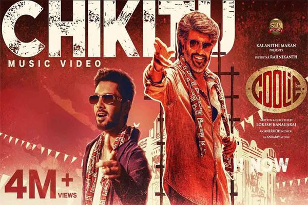 సూపర్స్టార్ రజనీకాంత్ కథానాయకుడిగా, ప్రముఖ దర్శకుడు లోకేశ్ కనగరాజ్ దర్శకత్వంలో రూపుదిద్దుకుంటున్న చిత్రం ‘కూలీ’. భారీ అంచనాల నడుమ తెరకెక్కుతున్న ఈ సినిమా విడుదల తేదీ దగ్గర పడుతుండటంతో చిత్ర బృందం ప్రచార కార్యక్రమాలను వేగవంతం చేసింది. ఇందులో భాగంగా సినిమా నుంచి మొదటి పాట ‘చికిటు’ను గురువారం విడుదల చేశారు. ఈ పాట విడుదలైన అతి తక్కువ సమయంలోనే సంగీత ప్రియులను విశేషంగా ఆకట్టుకుంటూ, యూట్యూబ్లో లక్షల కొద్దీ వ్యూస్తో ట్రెండింగ్లో నిలిచింది.