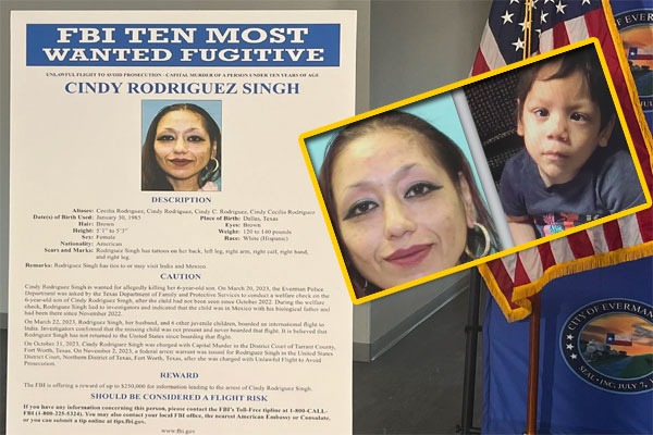 ఆరేళ్ల కన్నకొడుకును కిరాతకంగా హత్య చేసిందన్న ఆరోపణలతో అమెరికాలో ఓ మహిళ ఇప్పుడు మోస్ట్ వాంటెడ్ క్రిమినల్గా మారింది. భారత, మెక్సికన్ మూలాలున్న అమెరికన్ పౌరురాలైన సిండీ రోడ్రిగ్జ్ సింగ్ అనే ఈ 40 ఏళ్ల మహిళను ఎఫ్బీఐ తమ 'టాప్ 10 మోస్ట్ వాంటెడ్' జాబితాలో చేర్చింది. ఆమె ఆచూకీ తెలిపిన వారికి బహుమతిని 25,000 డాలర్ల నుంచి ఏకంగా 2,50,000 డాలర్లకు (సుమారు రూ. 2 కోట్లకు పైగా) పెంచుతున్నట్లు మంగళవారం ప్రకటించింది.