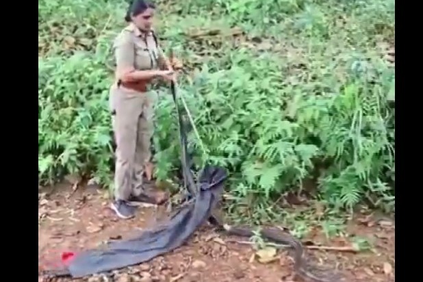 ప్రపంచంలోనే అత్యంత విషపూరితమైన పాముల్లో ఒకటైన కింగ్ కోబ్రాను ఒక అటవీశాఖ అధికారిణి ఎంతో సునాయాసంగా పట్టుకున్నారు. కేరళలో జరిగిన ఈ ఘటనకు సంబంధించిన వీడియో ప్రస్తుతం సామాజిక మాధ్యమాల్లో వైరల్ అవుతోంది. ఆమె సాహసానికి నెటిజన్లు ప్రశంసలు కురిపిస్తున్నారు.