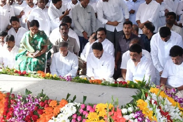 నేడు దివంగత ముఖ్యమంత్రి వైఎస్ రాజశేఖరరెడ్డి 76వ జయంతి. ఈ సందర్భంగా వైసీపీ అధినేత జగన్ తన తండ్రికి నివాళులర్పించారు. కడప జిల్లా ఇడుపులపాయలోని వైఎస్సార్ ఘాట్ను ఆయన కుటుంబ సభ్యులతో కలిసి సందర్శించారు.