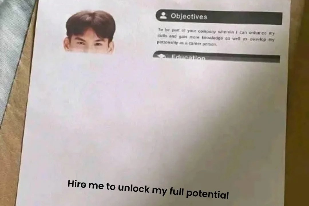 వివరాల్లోకి వెళితే, రెడిట్లోని 'రిక్రూటింగ్ హెల్' అనే కమ్యూనిటీలో ఓ రెజ్యూమె ఫోటో పోస్ట్ చేయబడింది. అందులో అభ్యర్థి ఫోటో సగం, తన కెరీర్ లక్ష్యం మాత్రమే ఉన్నాయి. కాగితం మిగతా భాగం ఖాళీగా ఉండి, మధ్యలో స్పష్టంగా "నన్ను నియమించుకుంటే నా పూర్తి సామర్థ్యాన్ని చూడగలరు" (Hire me to unlock my full potential) అనే ఒకే ఒక్క వాక్యం రాసి ఉంది. ఈ పోస్ట్ క్షణాల్లో వైరల్ అయింది.