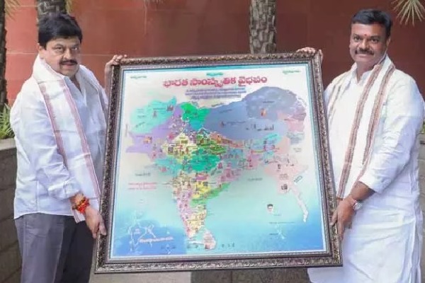 ఈ క్రమంలో తెలంగాణ బీజేపీ చీఫ్ రాంచందర్ రావును ఈరోజు మాధవ్ కలిశారు. రాంచందర్ రావుకు కూడా అదే భారతీయ సాంస్కృతిక వైభవం మ్యాప్ ను బహూకరించారు. అయితే, ఈ మ్యాప్ లో తెలంగాణ, ఏపీలను వేర్వేరుగా చూపించారు.