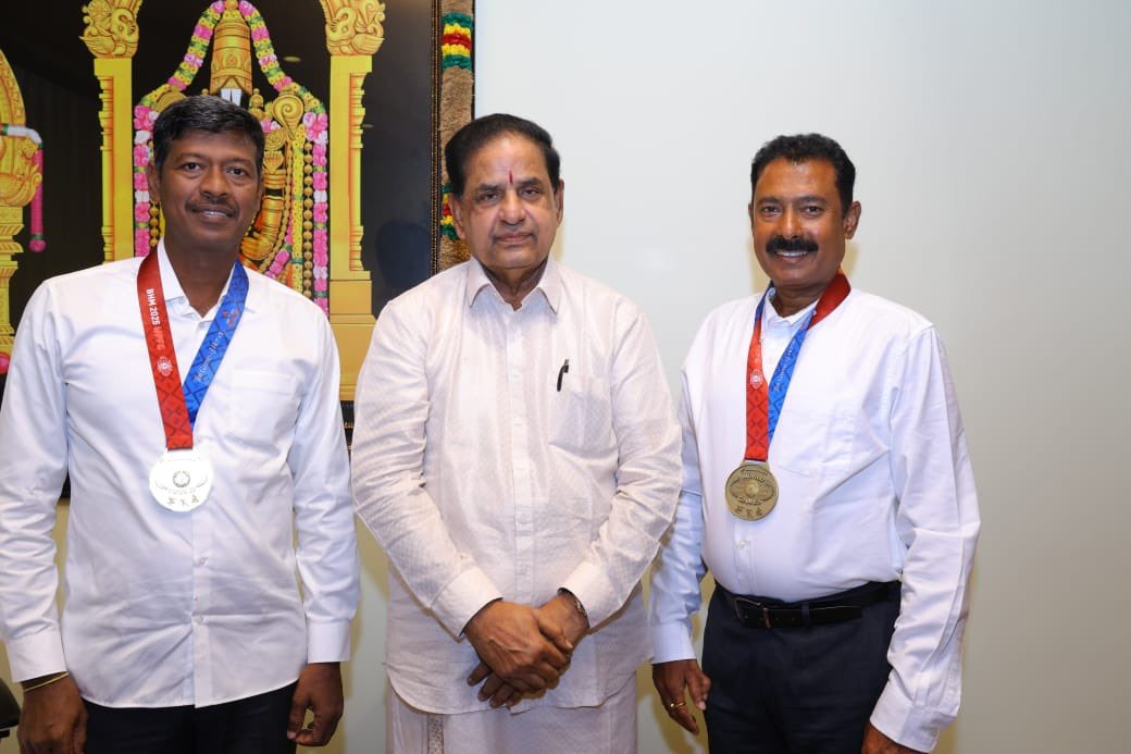 - టెన్నిస్ లో గోల్డ్, బ్రాంజ్ మెడల్స్ గెలిచిన టీటీడీ విజిలెన్స్ అధికారులు సురేంద్ర, రామ్ కుమార్
