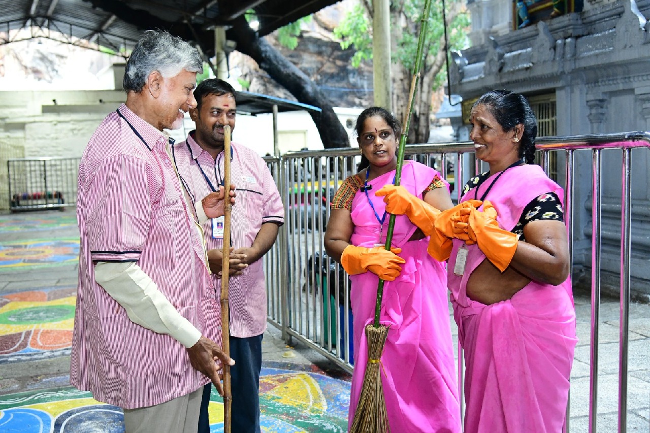 Sat 18:54 తిరుపతి కపిలేశ్వరాలయంలో పారిశుద్ధ్య కార్మికుడి అవతారమెత్తిన సీఎం చంద్రబాబు... ఫొటోలు ఇవిగో! నేడు తిరుపతిలో సీఎం చంద్రబాబు పర్యటన కపిలేశ్వరాలయాన్ని సందర్శించిన సీఎం ఆలయ పరిసరాలను శుభ్రం చేసిన వైనం Read full story