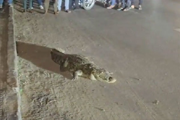 కమిషనర్ బంగ్లాకు సమీపంలోనే ఈ ఘటన చోటుచేసుకుంది. జనం తన చుట్టూ గుమిగూడటంతో భయపడిన మొసలి ముందుగా కదలకుండా ఉండిపోయింది. ఆ తర్వాత తప్పించుకునేందుకు ఒక్కసారిగా జనంవైపు దూసుకెళ్లింది. స్థానికులు అటవీశాఖ అధికారులకు సమాచారం ఇవ్వడంతో వారు ఘటనాస్థలికి వచ్చి, మొసలిని పట్టుకెళ్లారు.