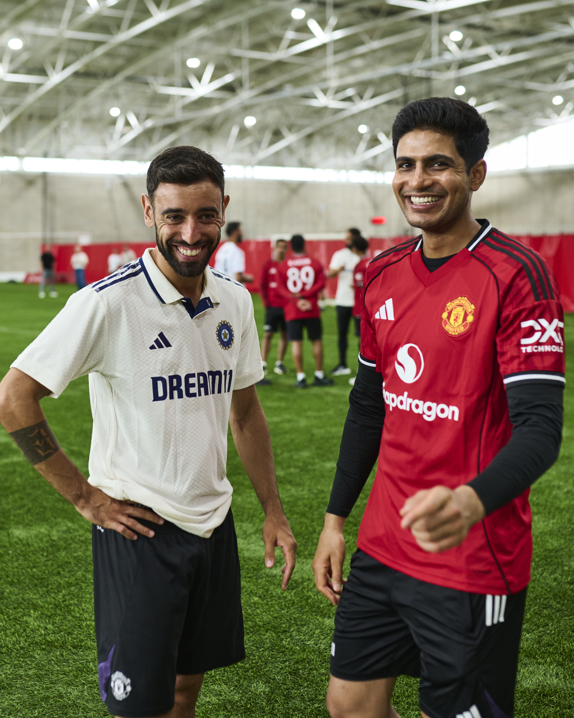 ఇంగ్లండ్తో జరుగుతున్న టెస్ట్ సిరీస్ కోసం మాంచెస్టర్లో ఉన్న భారత క్రికెట్ టీమ్ ఆటగాళ్లు, మాంచెస్టర్ యునైటెడ్ ఆటగాళ్లతో కలిసి ఒక ఫోటోషూట్లో పాల్గొన్నారు. ఈ కార్యక్రమం క్రికెట్ మరియు ఫుట్బాల్ అభిమానులకు ఒక అరుదైన క్షణంగా నిలిచింది. ఈ సందర్భంగా రెండు జట్ల ఆటగాళ్లు పరస్పరం అనుభవాలను పంచుకున్నారు.