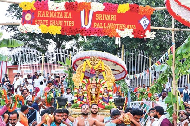 తిరుమలలో శ్రీవారి పల్లవోత్సవం నిన్న వైభవంగా జరిగింది. మైసూరు మహారాజు జయంతిని పురస్కరించుకుని టీటీడీ ఈ కార్యక్రమాన్ని నిర్వహించడం ఆనవాయితీగా వస్తోంది. సహస్ర దీపాలంకరణ సేవ అనంతరం శ్రీదేవి, భూదేవి సమేత మలయప్ప స్వామి ఊరేగింపుగా కర్ణాటక సత్రానికి వేంచేపు చేశారు.