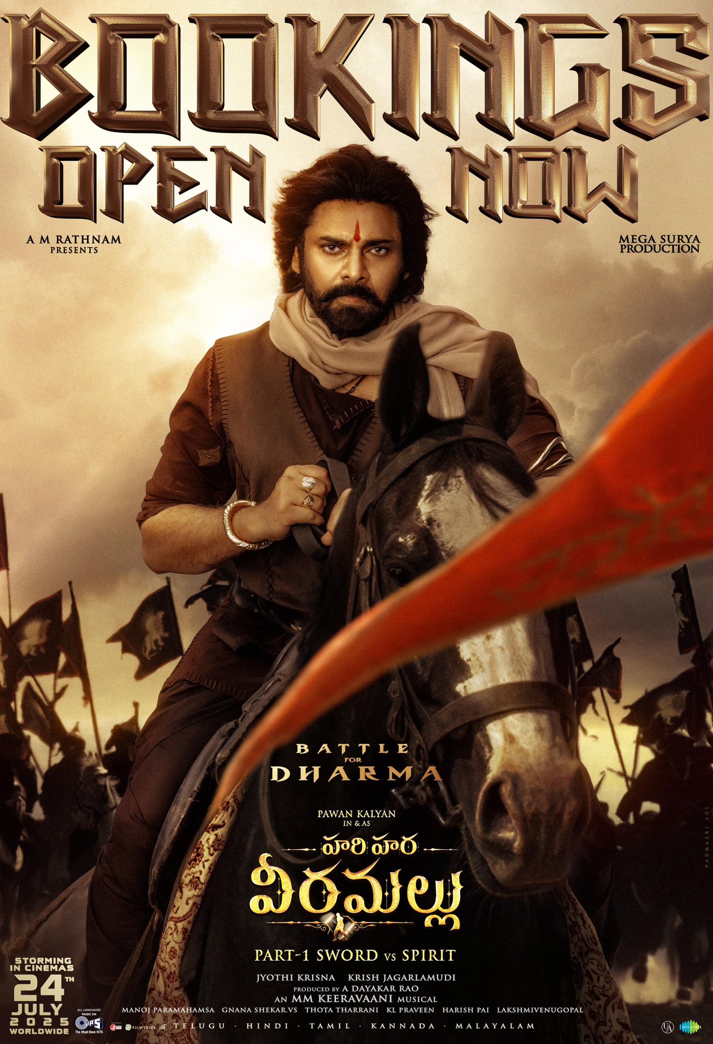 పవర్ స్టార్ పవన్ కల్యాణ్ అభిమానులు ఎప్పుడెప్పుడా అని ఎదురుచూస్తున్న 'హరి హర వీర మల్లు' సినిమా టిక్కెట్ల బుకింగ్స్ ప్రారంభమయ్యాయి. జూలై 24న ప్రపంచవ్యాప్తంగా విడుదల కానున్న ఈ భారీ బడ్జెట్ చిత్రంపై అంచనాలు భారీగా ఉన్నాయి. టిక్కెట్ బుకింగ్స్ ఇప్పటికే 'డిస్ట్రిక్ట్ యాప్ లో ప్రారంభం కాగా, బుక్ మై షో ద్వారా ఈ సాయంత్రం ప్రారంభం అవుతాయని తెలుస్తోంది. ఇక, ప్రీమియం సీట్లకు విపరీతమైన డిమాండ్ ఏర్పడింది. బుకింగ్స్ ఓపెన్ అయిన కొద్దిసేపటికే సోల్డ్ అవుట్ అనే సందేశాలు కనిపిస్తున్నాయి. దాదాపు రెండేళ్ల తర్వాత పవన్ నుంచి వస్తున్న సినిమా కావడంతో అభిమానుల్లో విపరీతమైన ఆసక్తి నెలకొంది.
