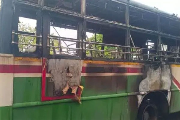 - బస్సుకు గుర్తుతెలియని వ్యక్తులు నిప్పుపెట్టడతో పాక్షికంగా దగ్ధమైన వైనం