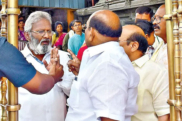 Fri 07:36 టీటీడీ ఉద్యోగితో ఎమ్మెల్యే వాగ్వాదం.. అసలేం జరిగిందంటే..! టీటీడీ ఉద్యోగితో వెంకటగిరి ఎమ్మెల్యే కే రామకృష్ణ వాగ్వాదం నిన్న ఉదయం వీఐపీ బ్రేక్లో శ్రీవారి మూలమూర్తిని దర్శించుకున్న ఎమ్మెల్యే బయటకు వస్తూ మహద్వారం ముందు ఉన్న గేటు తీయాలని ఉద్యోగిని అడిగిన వైనం ఉద్యోగి గేటు తీయడానికి నిరాకరించడంతో ఎమ్మెల్యే ఆగ్రహం Read full story